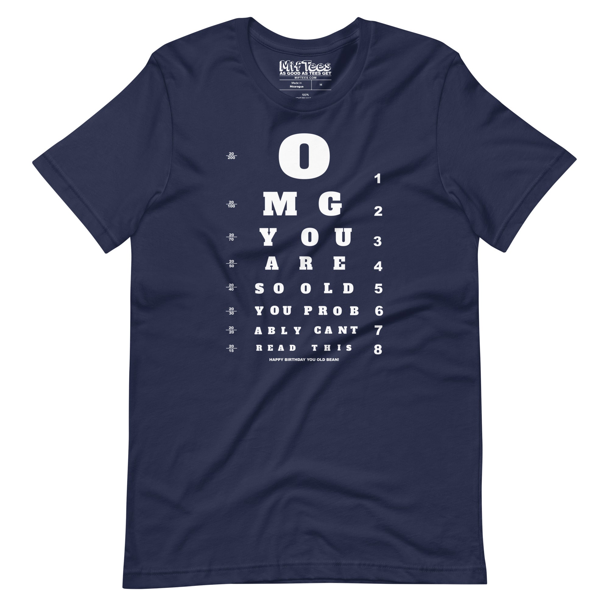 Get ready to squint and laugh with this hilarious OMG You’re So Old You Probably Can’t Read This t-shirt! Perfect for poking fun at a friend or family member’s birthday, this design features an eye test-style graphic with letters that get smaller and smaller—just like their chances of seeing it all! Watch them squint as the letters get tinier—perfect for celebrating the joy of getting older and wiser (and maybe needing glasses)! Great for those 40th, 50th, 60th birthdays or beyond, for anyone who can take a joke about their age.