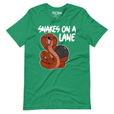 Funny Snakes On A Lane bowling graphic tee for a bowling team to wear for bowling league games. Perfect bowling team t-shirt for a bowling team that knows that their bowling is venomous. Features a cobra snake wrapped around a bowling ball and words...- From $29.99 USD