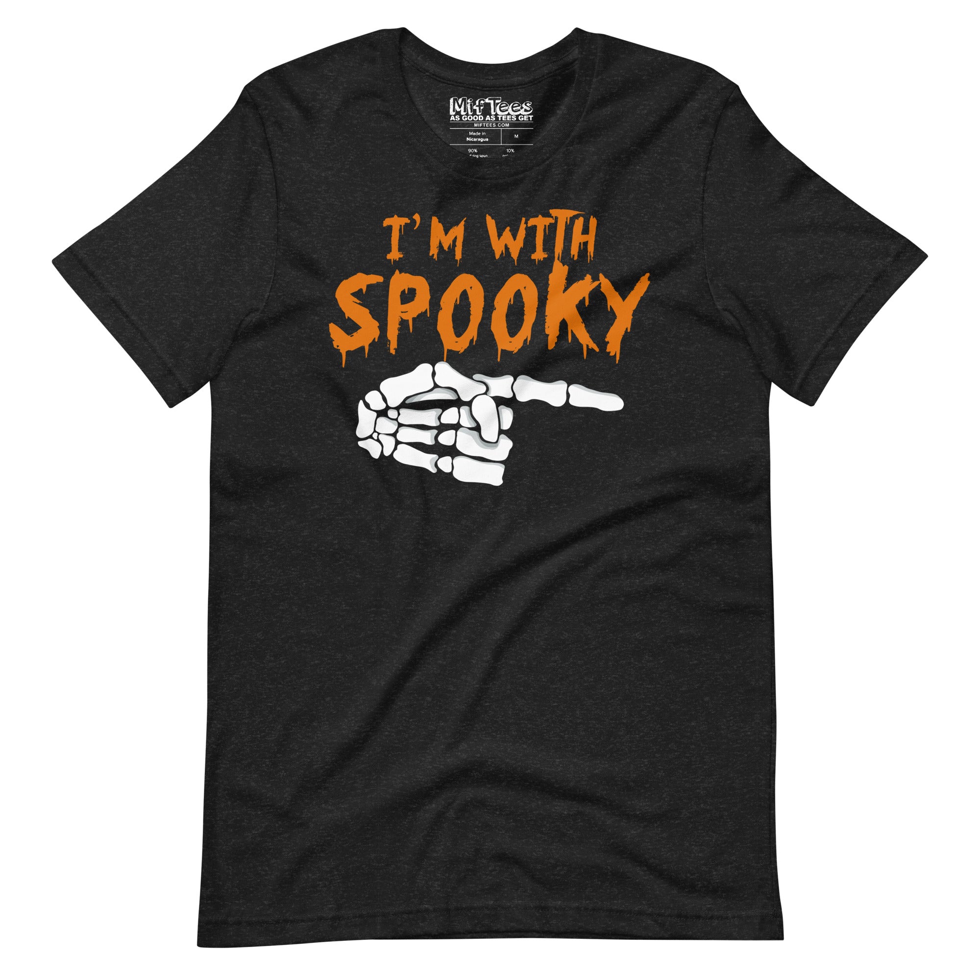 Spooky Squad Unite! This hilarious āIām With Spookyā t-shirt features a skeleton hand pointing left, letting everyone know youāre rolling with the spookiest friend in town! Match it up with our other āIām With Spookyā tee with a hand pointing right for the ultimate spooky duo. Whether youāre trick-or-treating, partying, or just haunting the neighborhood with your spooky sidekick, these matching tees bring out the spooky spirit in style! Ideal for pairs or groups who love a little Halloween humor. Whether you're out with your spooky BFF or your boo (pun intended!), this t-shirt set is the perfect way to show off your spooky connection.