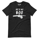 He's My BOO Funny Halloween Couple's T-Shirt Black Heather