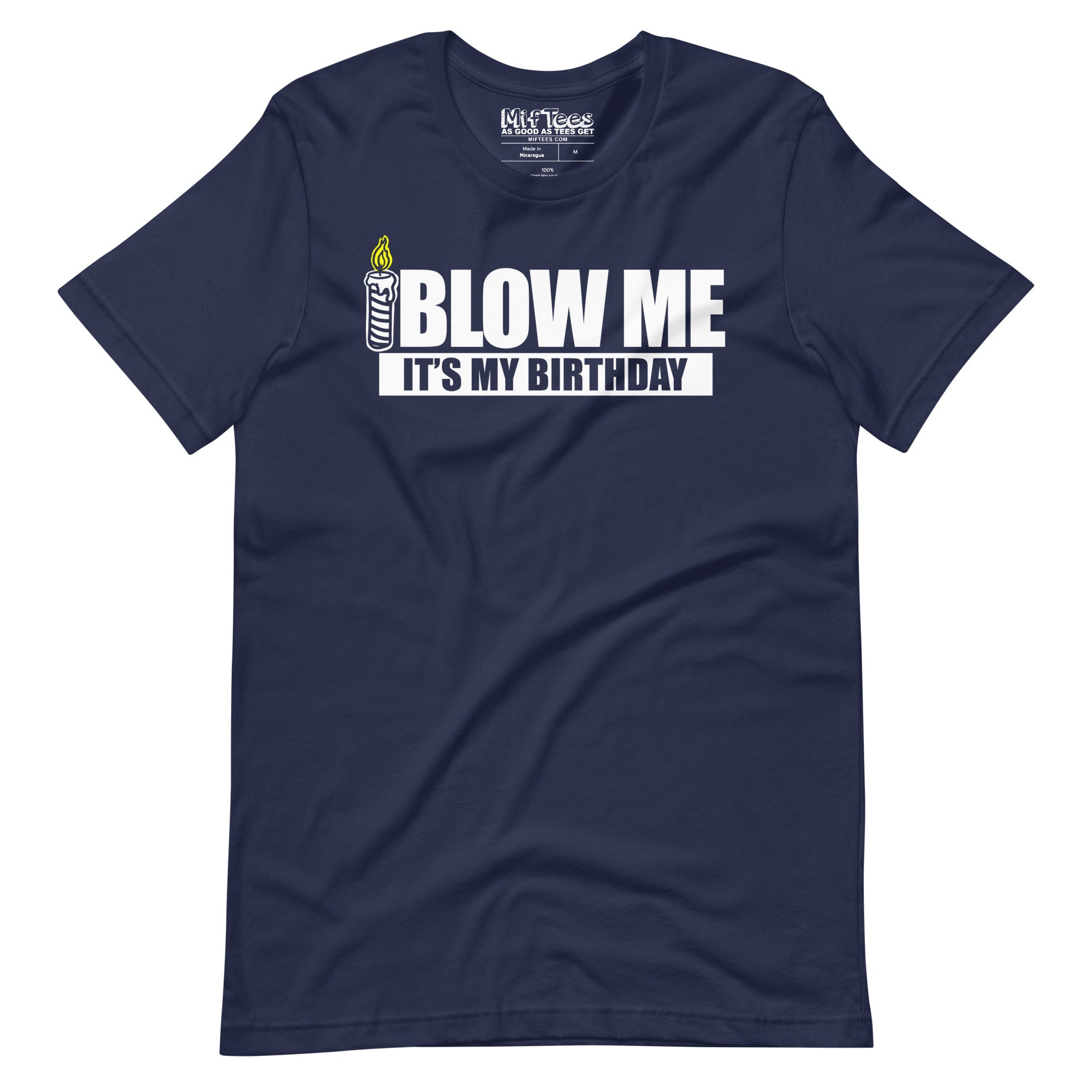 Blow out the candles, raise a glass, and flaunt your sense of humor with this funny "Blow Me, It’s My Birthday" t-shirt. Featuring a cheeky birthday candle and the ultimate sarcastic slogan, "Blow Me, It’s My Birthday," it's the perfect way to let everyone know how you really feel about your special day. Whether you're at a raucous birthday bash or a laid-back celebration, this shirt makes sure everyone knows you’re here to party on your own terms. Wear this Blow Me It's my Birthday shirt to your party and watch the reactions roll in!