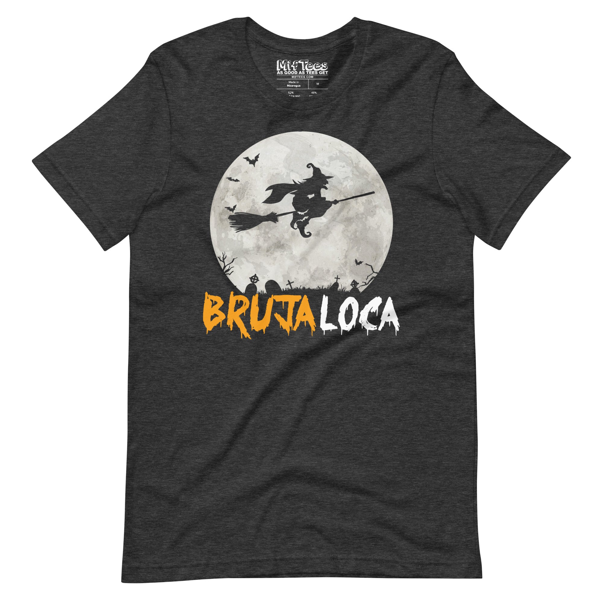 Show the world that you're the baddest Bruja around with this hilarious Bruja Loca tee. Featuring a wild witch riding her broomstick across a full moon, this shirt screams that you're not just any witch — you're the top witch! Whether you're brewing potions or just brewing up some chaos, this tee is perfect for the fierce Bruja who knows her power. It's a great way to remind everyone that you're not to be messed with.