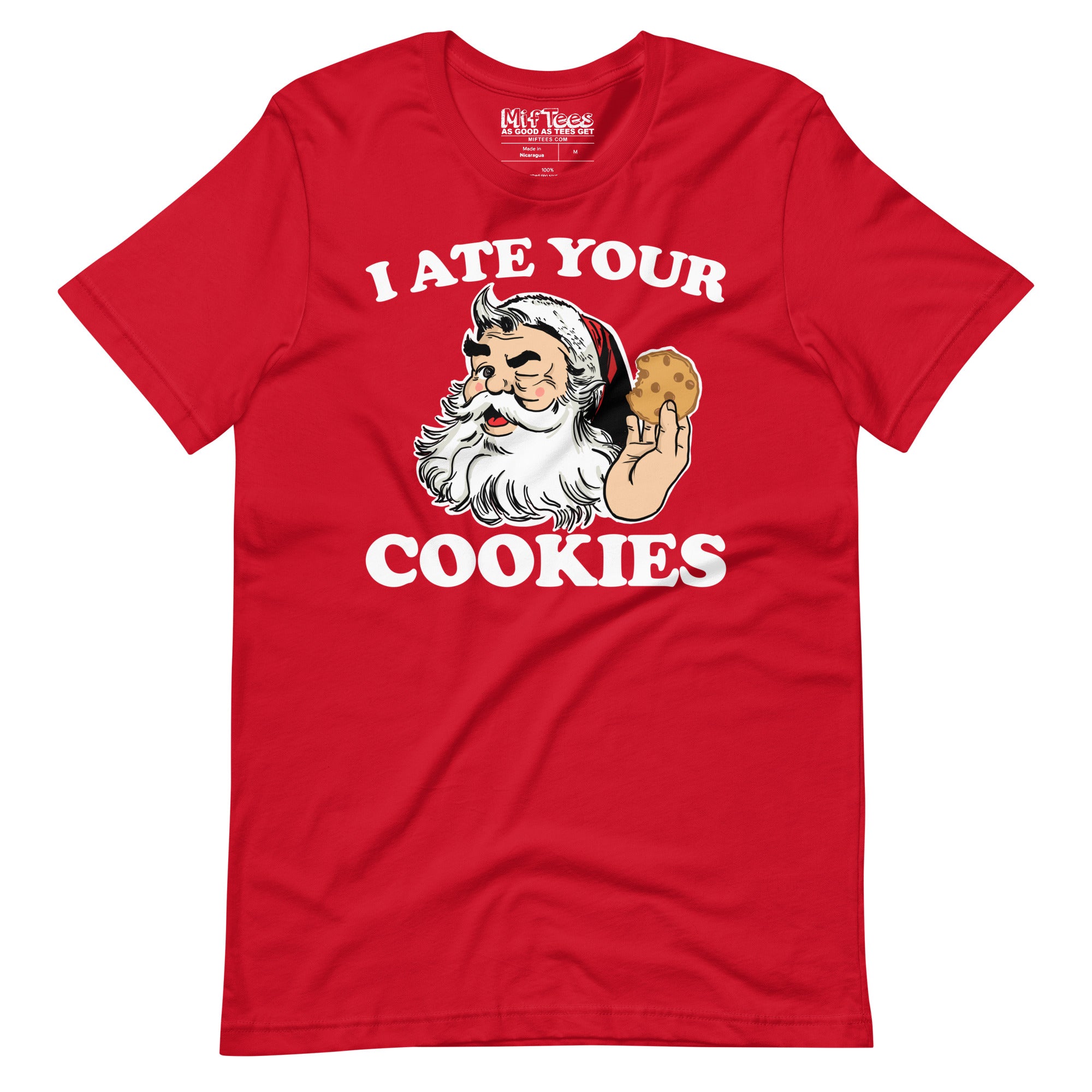 This I Ate Your Cookies Santa t-shirt features a winking Santa holding a cookie with the words “I ate your cookies,” adding a hilarious, mischievous touch to holiday attire. Perfect for anyone who’s not above a little cookie theft! Wear it to Christmas parties, family dinners, or cookie exchanges and get a laugh every time. It’s the ultimate icebreaker for anyone who loves to indulge in holiday treats.