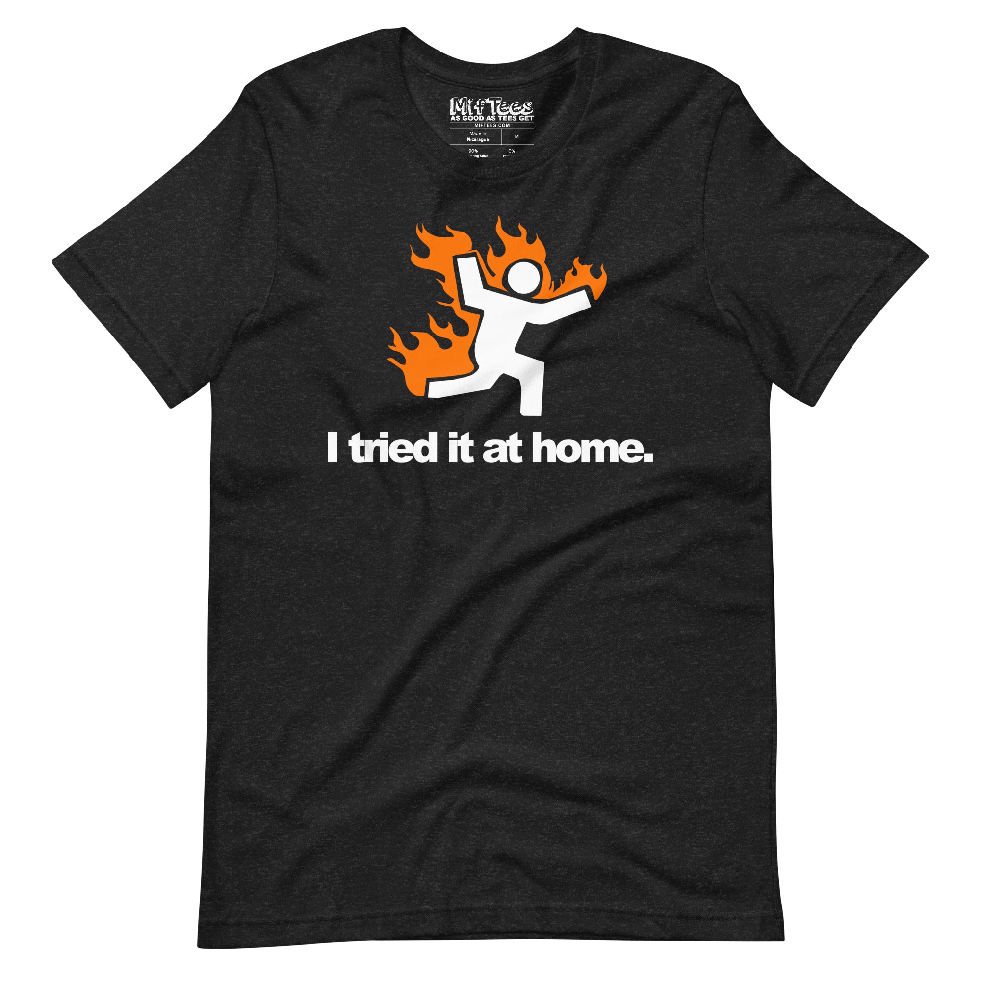 Know someone who’s always trying out new projects and occasionally setting things ablaze? This "I Tried It at Home" tee makes a fantastic gift for birthdays, holidays, or just because they need a humorous reminder to maybe rethink their next experiment!