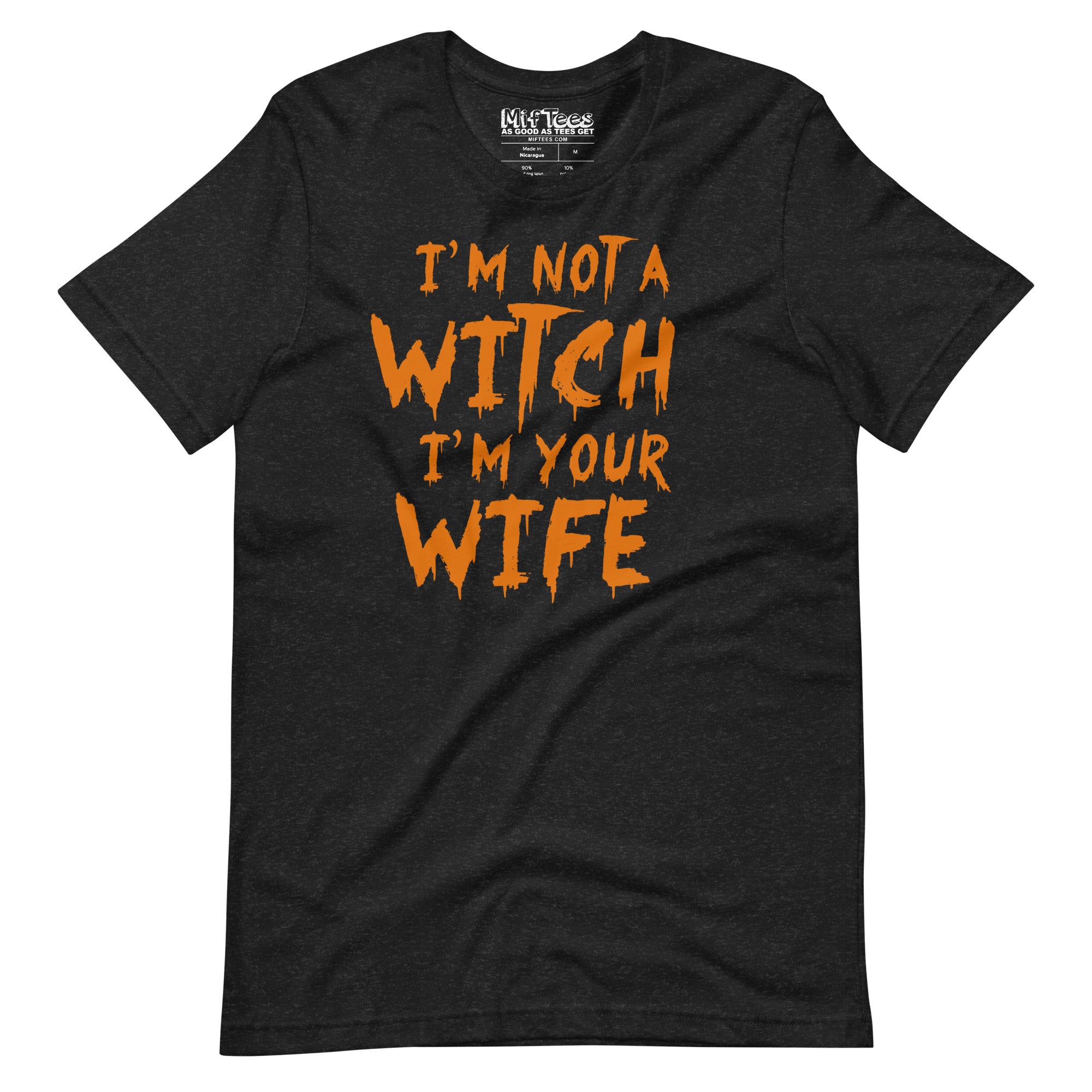 Let everyone know your spooky status with this hilarious “I’m Not a Witch, I’m Your Wife” t-shirt! It’s the perfect mix of Halloween humor and marital magic for those who embrace their witchy side... and their love life! Match it up with our “Get Back, Witch” t-shirt for a duo that’s full of spooky sass and playful banter. You and your boo will be the witchiest couple at the party—or anywhere you go this Halloween! Get your "I'm Not a Witch, I'm Your Wife" t-shirt today and pair it with "Get Back, Witch" for the ultimate Halloween couple’s look!