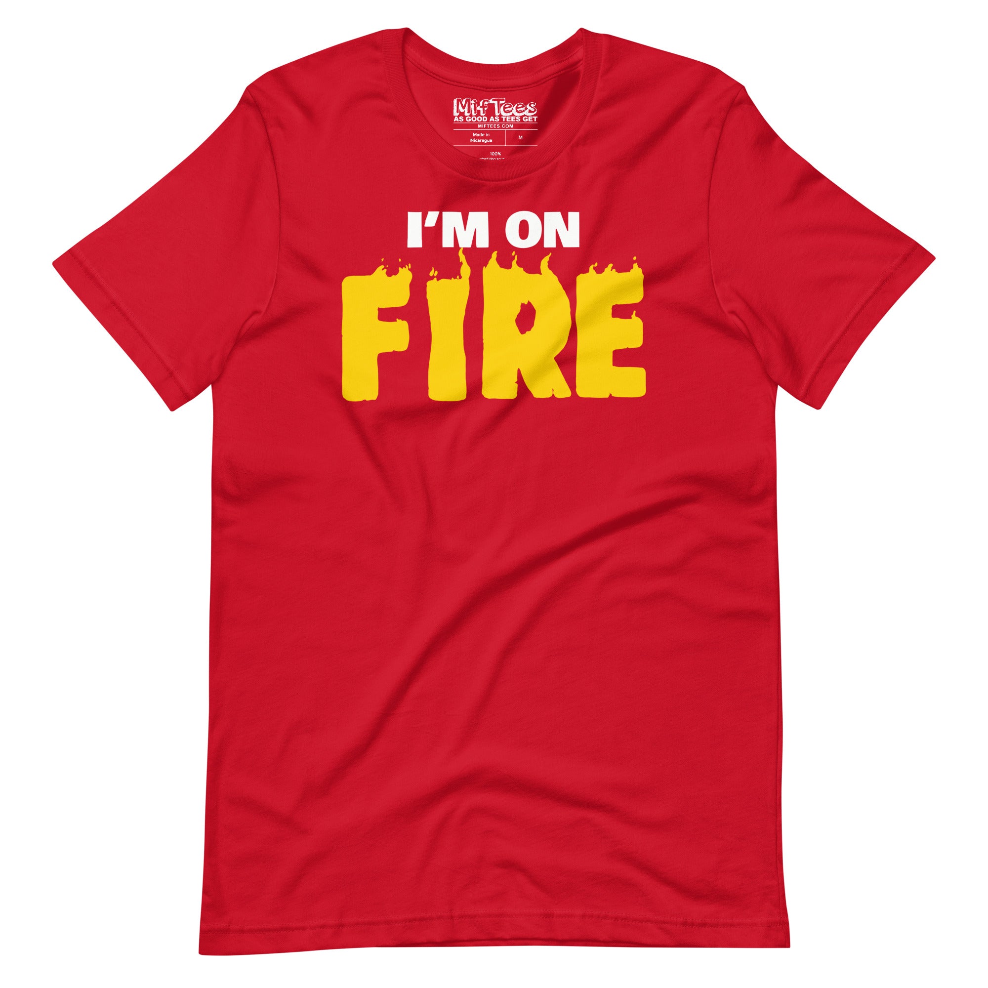 This funny "I'm On Fire" t-shirt features the word "Fire" literally on fire, making it the perfect shirt for anyone who knows they’re absolutely killing it—whether it’s on the field, the court, or just in life. It’s the ultimate way to show off your winning streak with a fiery twist of humor! Whether you're on fire in your sport, at work, or just in life, this shirt celebrates your red-hot streak with a sense of humor. It’s great for athletes, competitors, or anyone who’s burning up the competition.