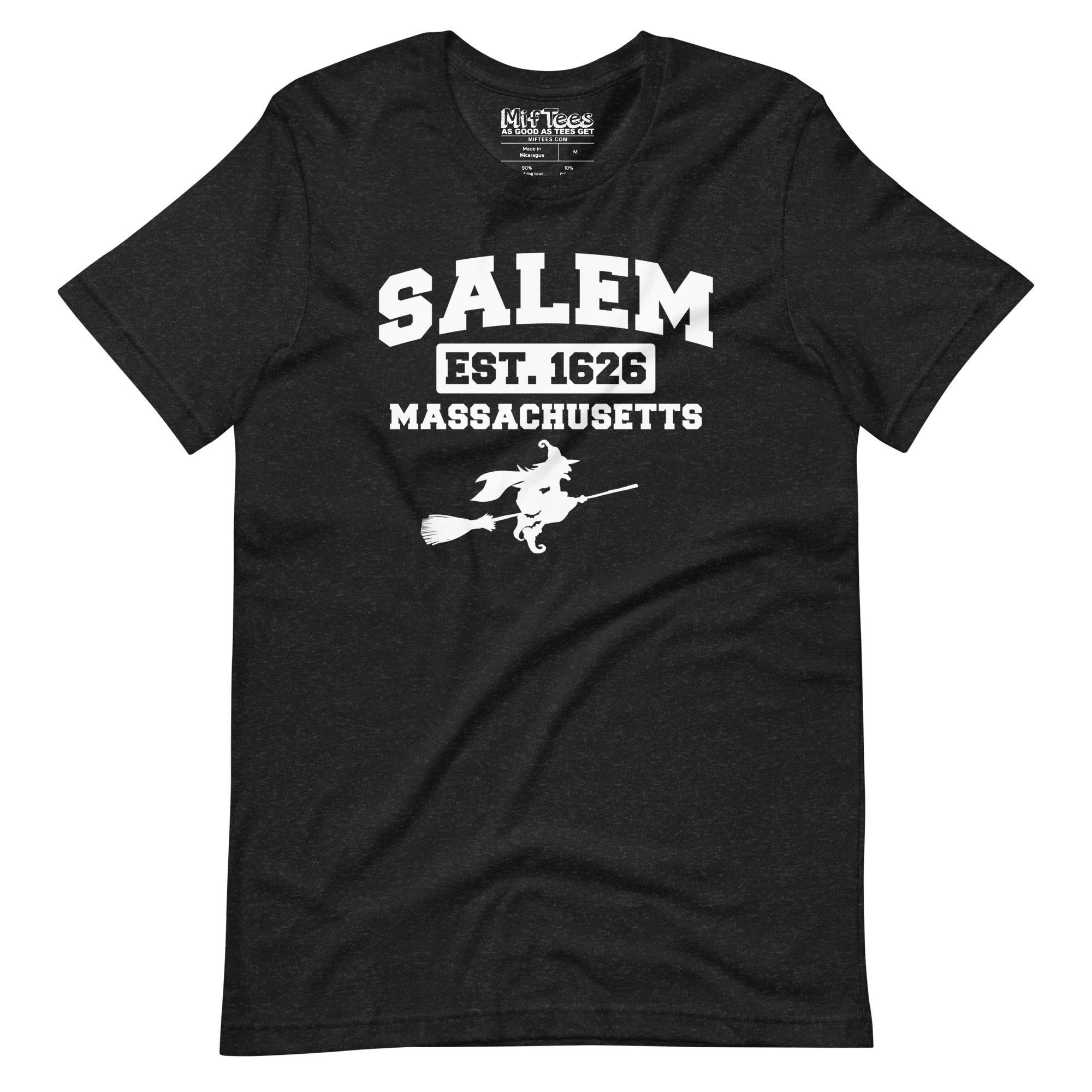 Whether you’re a history buff, a Salem tourist, or just someone who can’t resist a good spooky tee, this shirt blends historical flair with witchy fun. Grab your "Salem, Massachusetts – Est. 1626" t-shirt today and get ready to fly high with Salem's most famous witches!